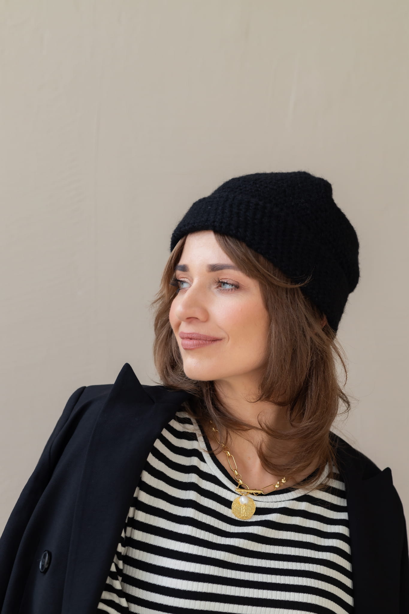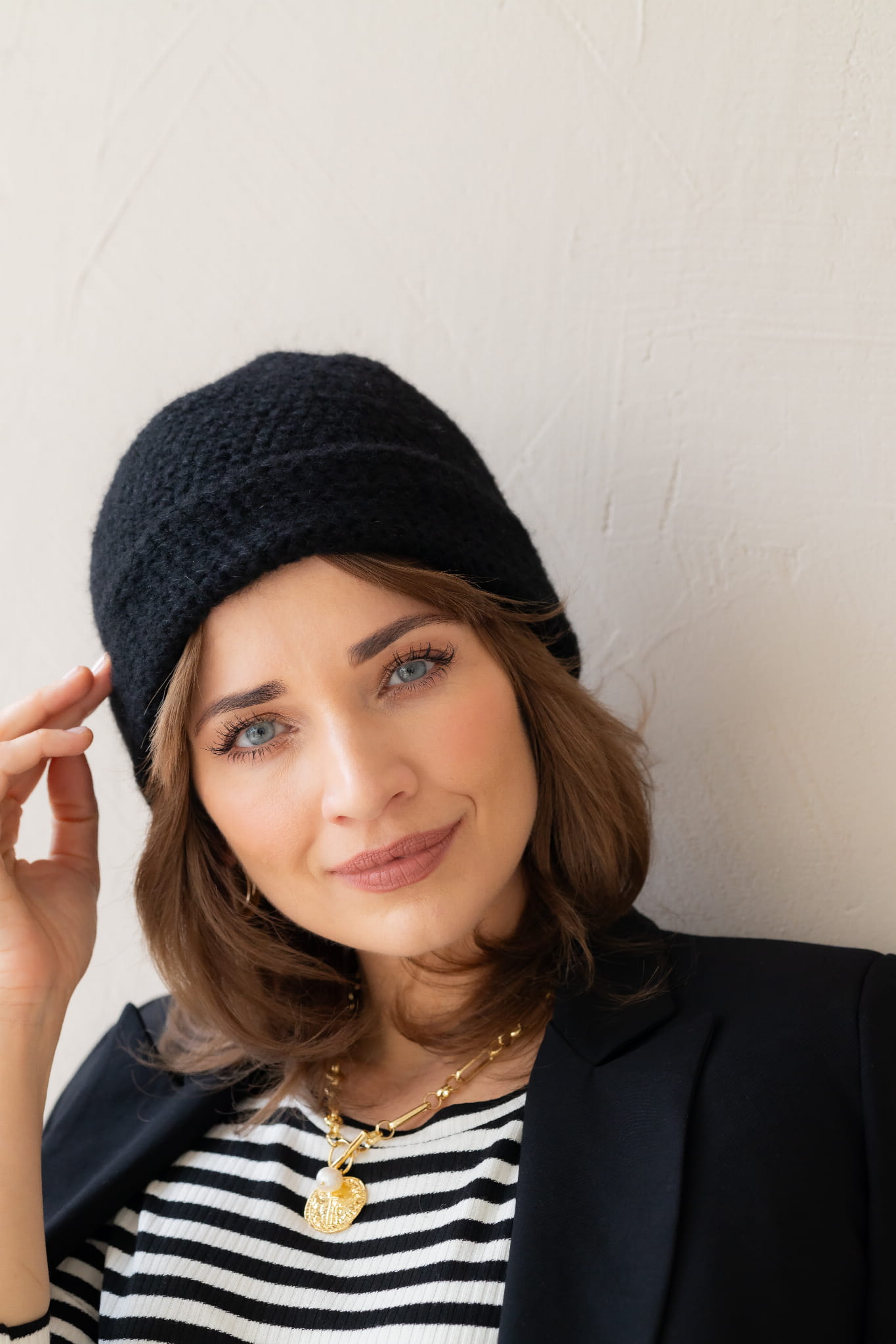 Czapka z alpaki i jedwabiu - czarna