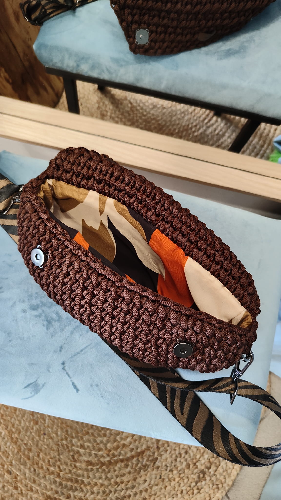 Dzięki zapięciu na karabińczyki, a nie na klasyczną klamrę możecie wydłużyć długość taśmy i nosić ją jak torebkę.