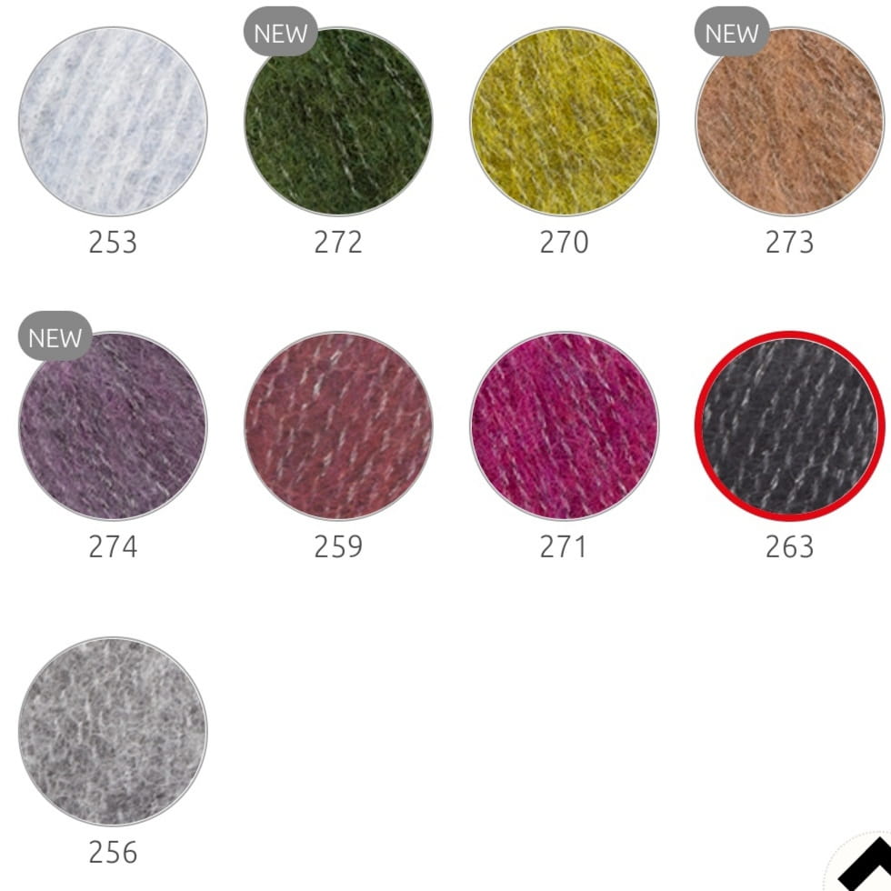 Włóczka posiada cieniutką srebrną nitkę, dzięki której delikatnie połyskuje.