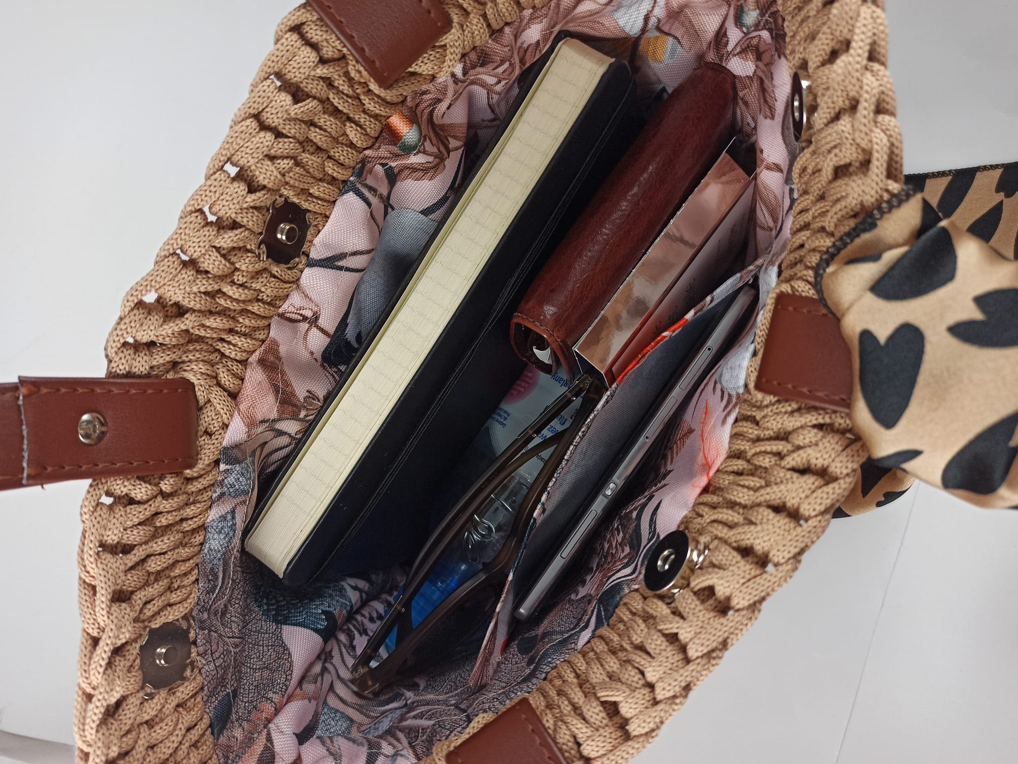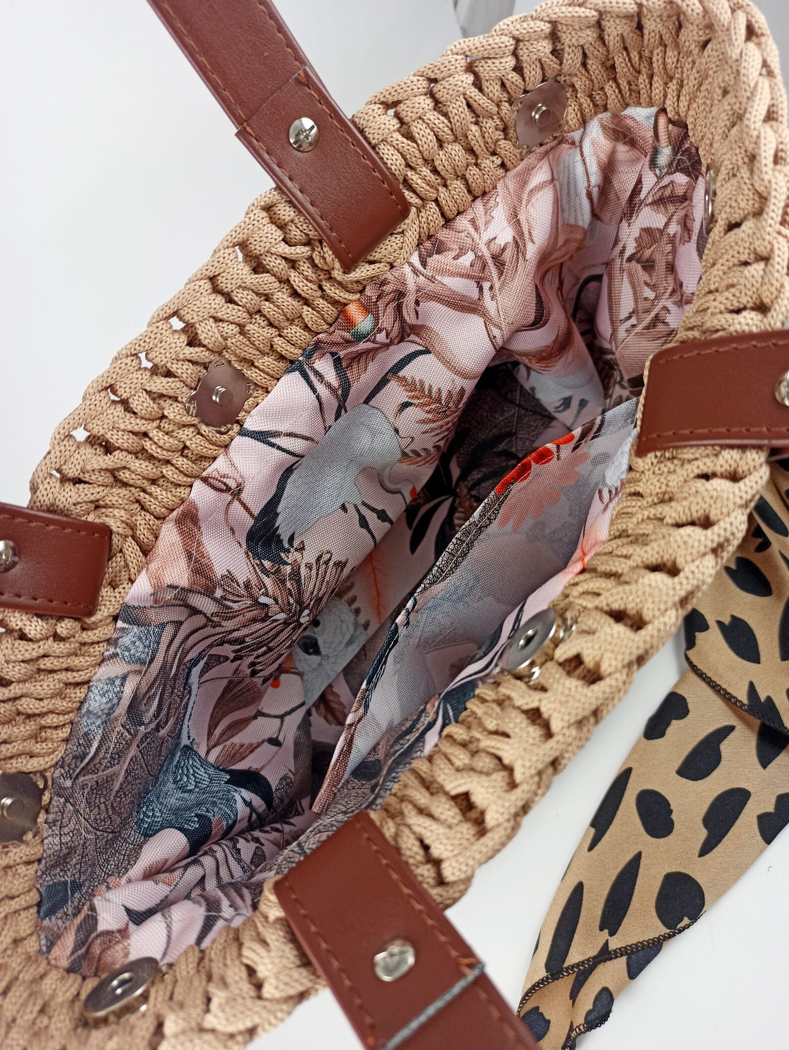 Wygodna, bardzo pojemna i upleciona ręcznie z lekkiego i wodoodpornego sznurka - jednym słowem shopperka idealna. W środku podszewka z kieszonką na drobiazgi. Torebka zapinana na magnesy.