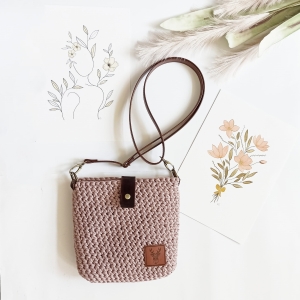 Kolor: pudrowy róż plus brązowe elementy i regulowany pasek z ekoskóry