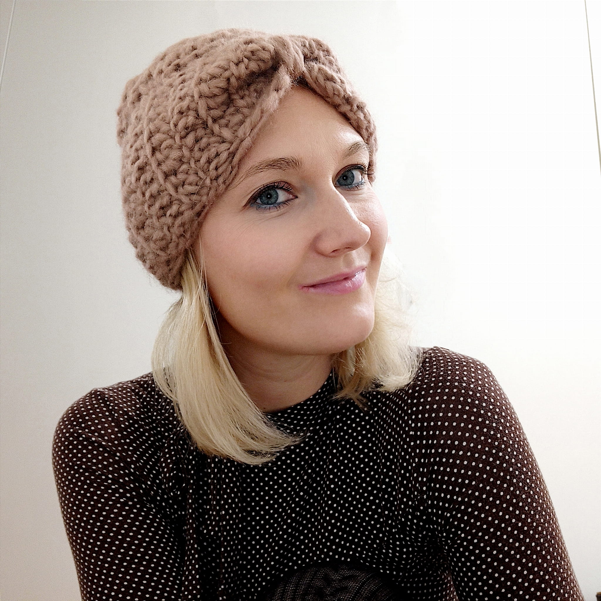 Wykończona ciekawym wiązaniem w kształcie kokardy. Cieplutka i lekka - nie będzie obciążać włosów.