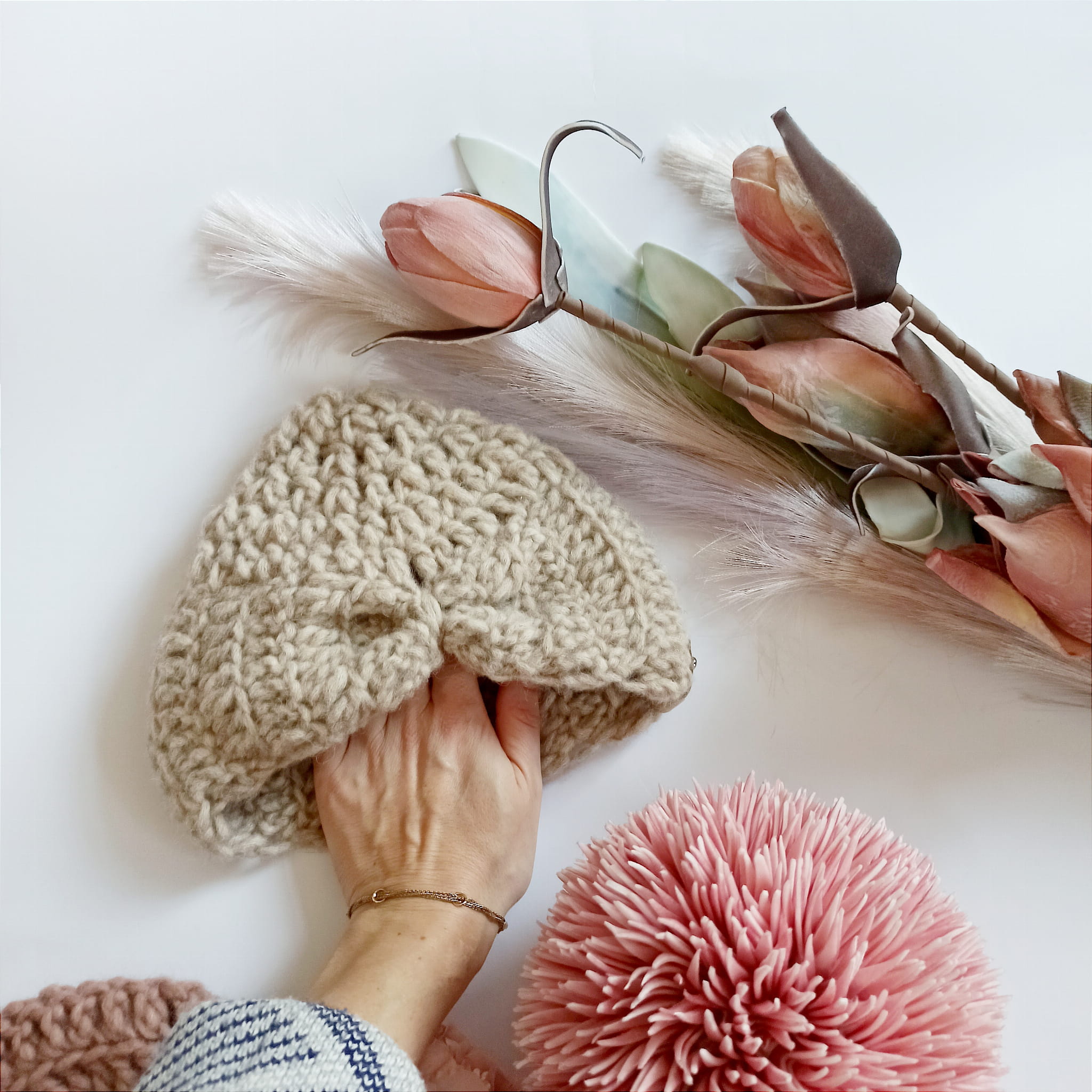 Mięciutka czapka Bow z wełną merynosów i alpaki.