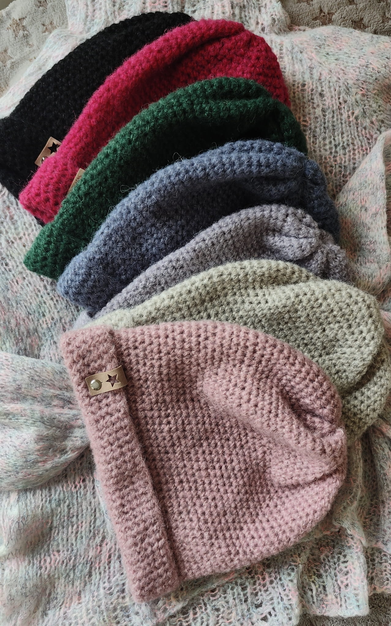 Miękka i bardzo wygodna czapka z eksluzywnej wełny baby alpaki, jedwabiu, merynosa i yaka. Wykonana ręcznie z największą starannością.