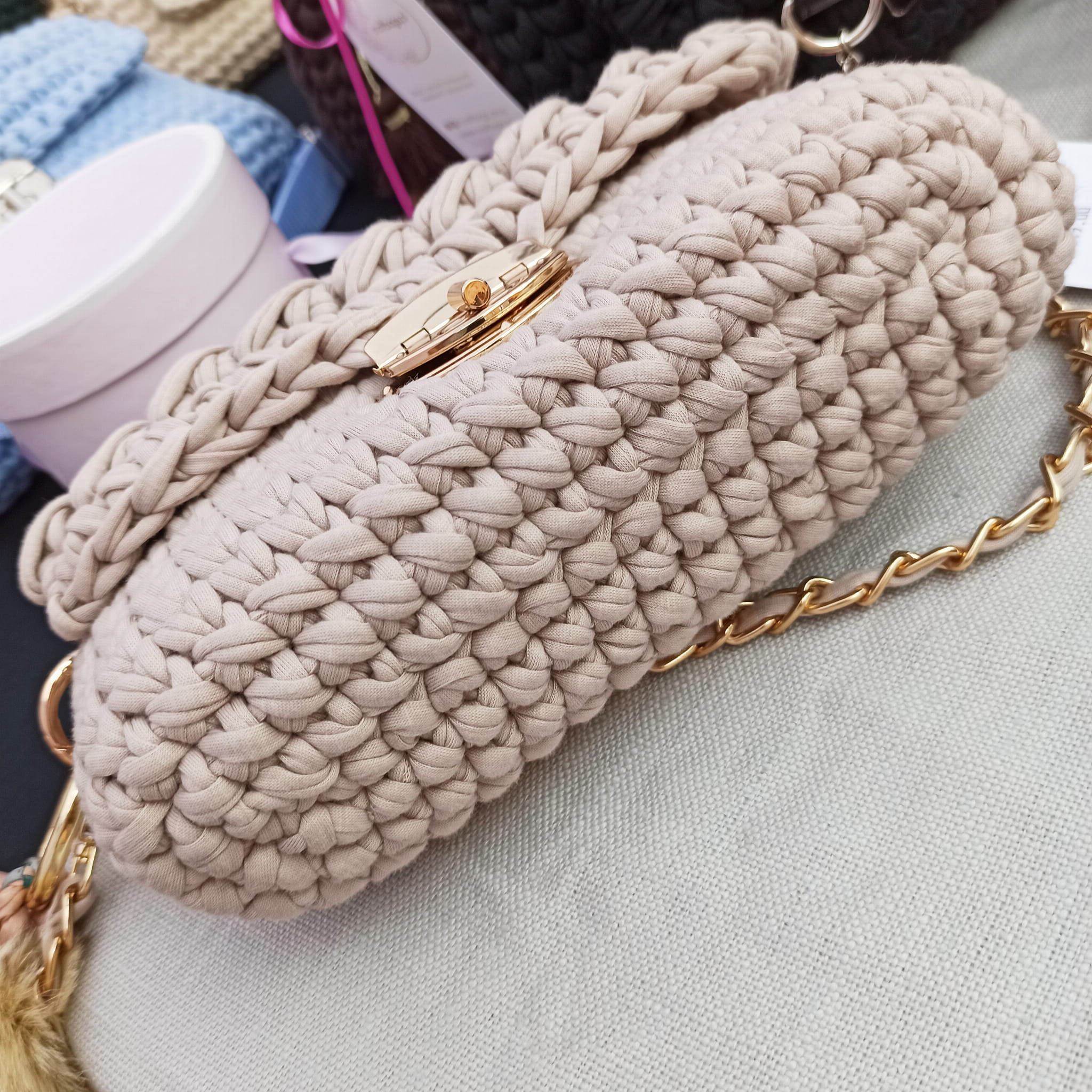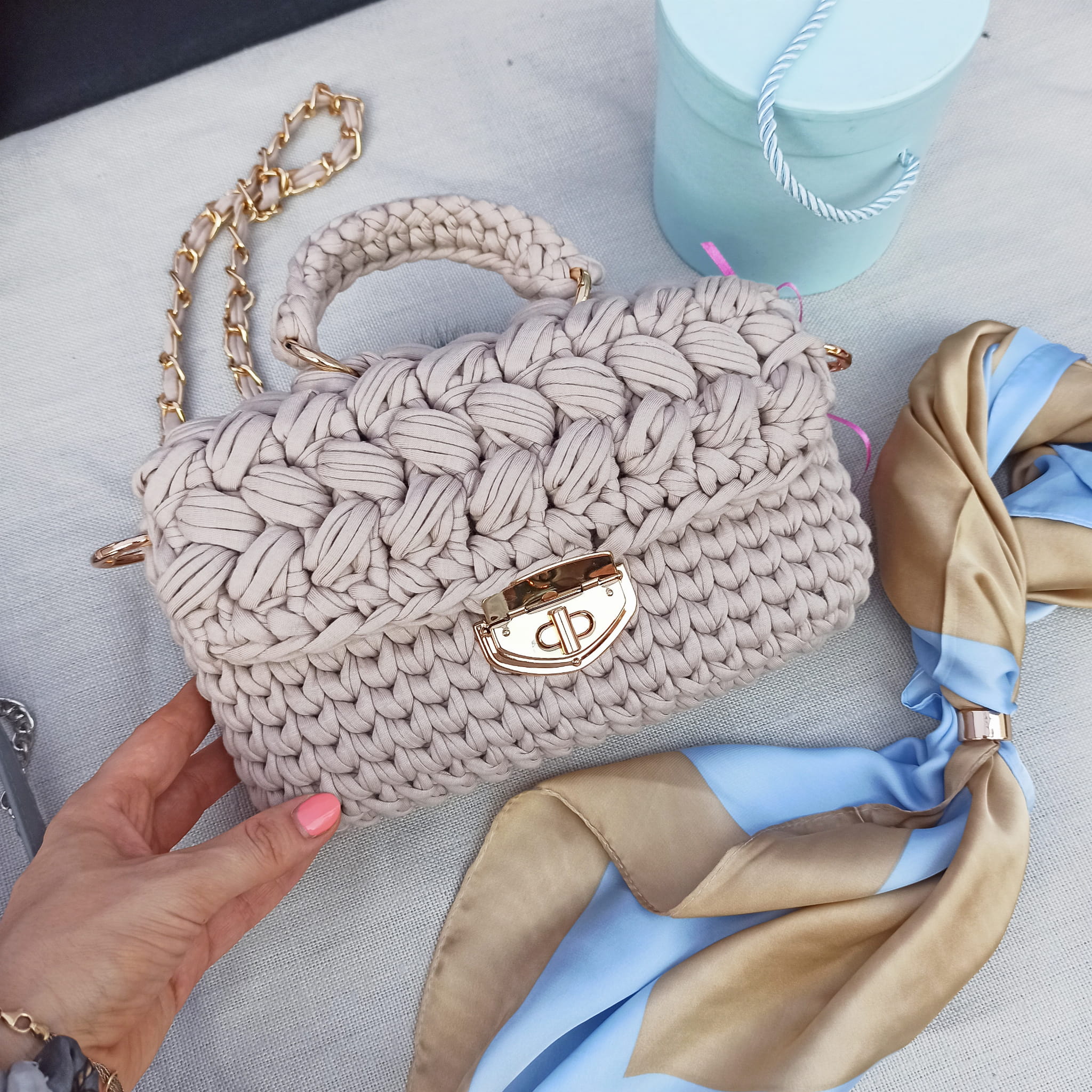 Przepiękna torebka wykonana ręcznie na szydełku z najwyższą starannością.