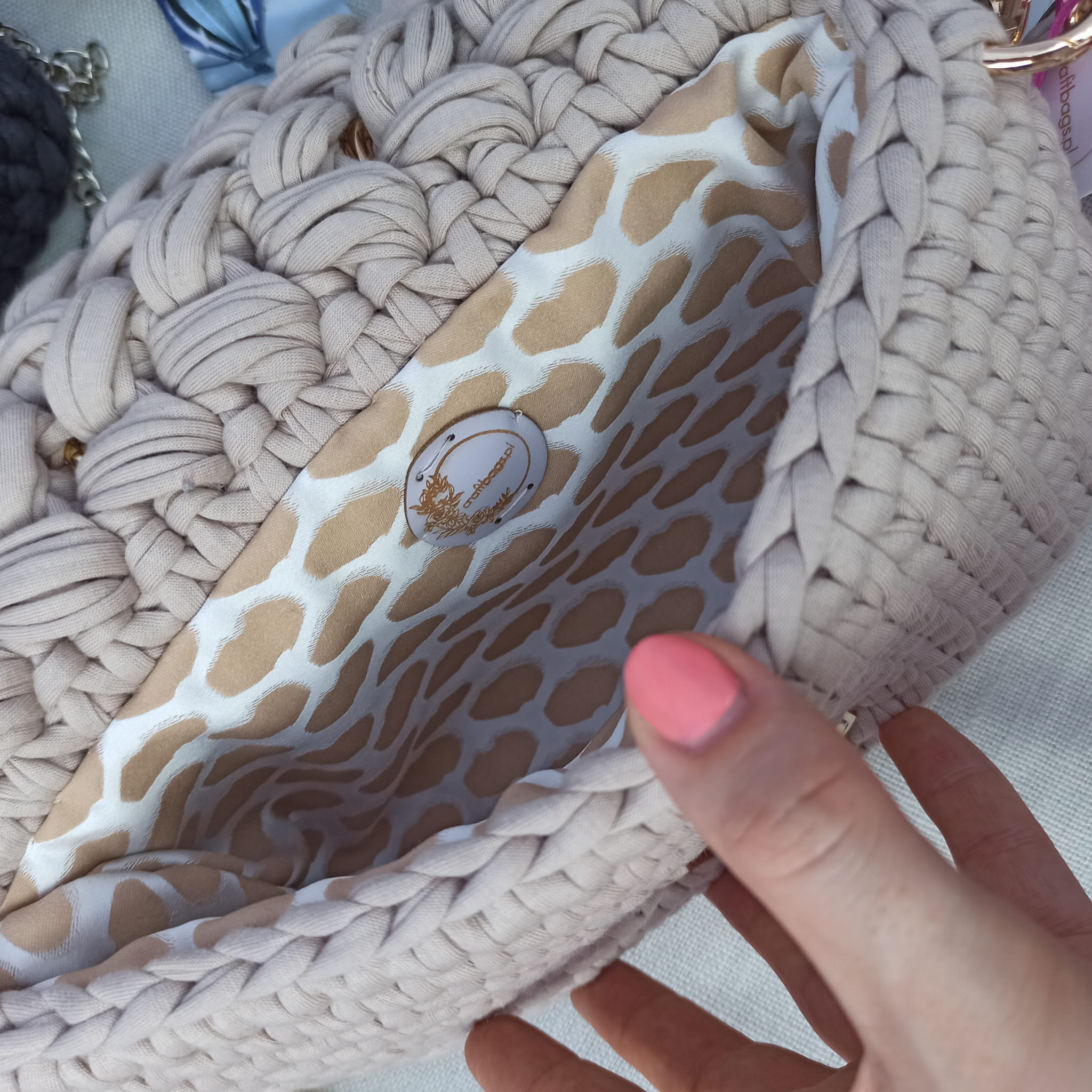 Wykończona podszewką z materiałem pięknie dobranym pod kolor przędzy.