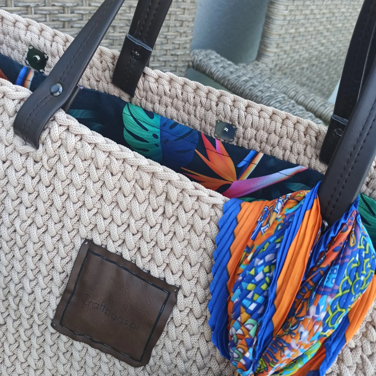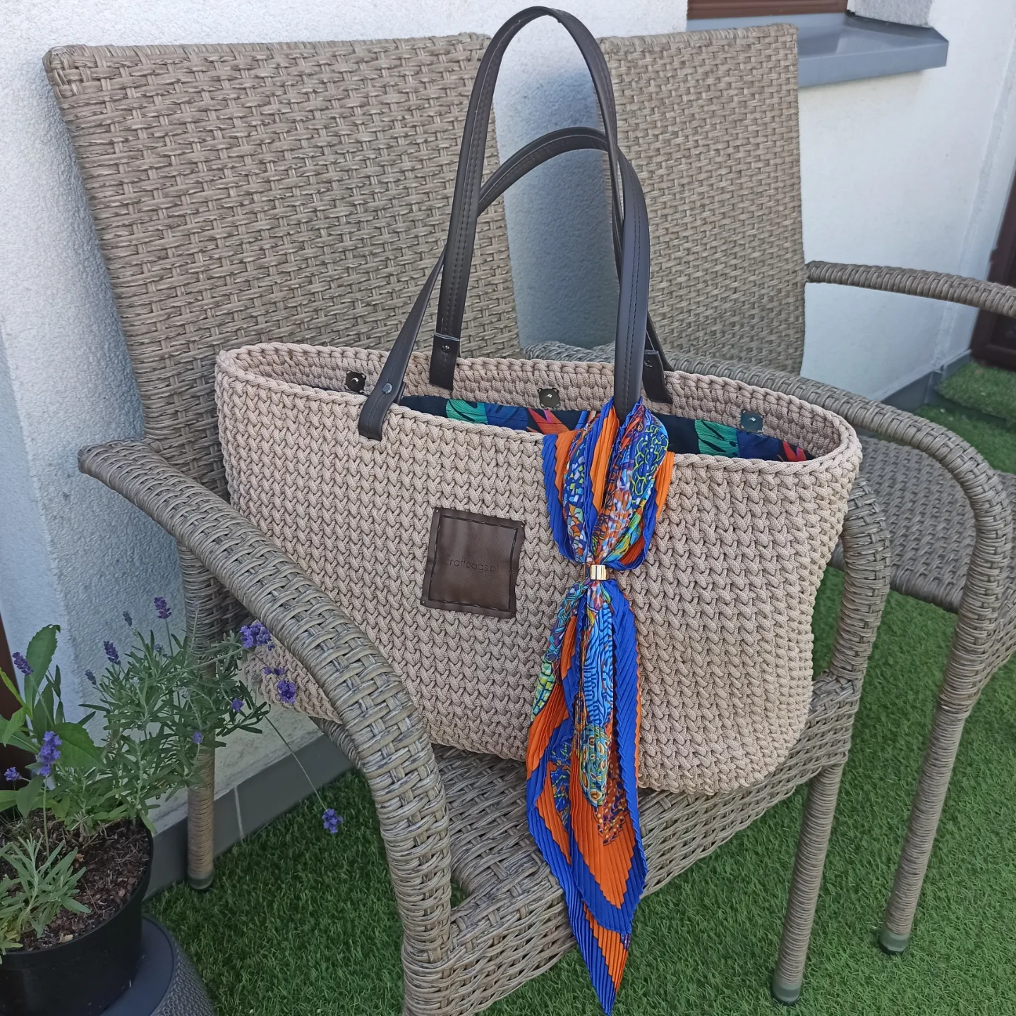 Shopperka Craftbags z lekkiego sznurka - beżowa z apaszką