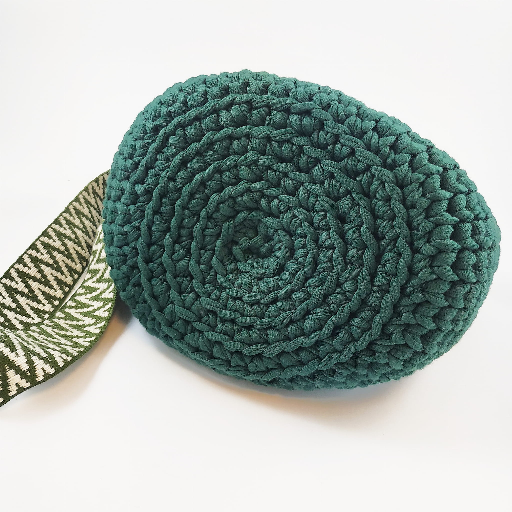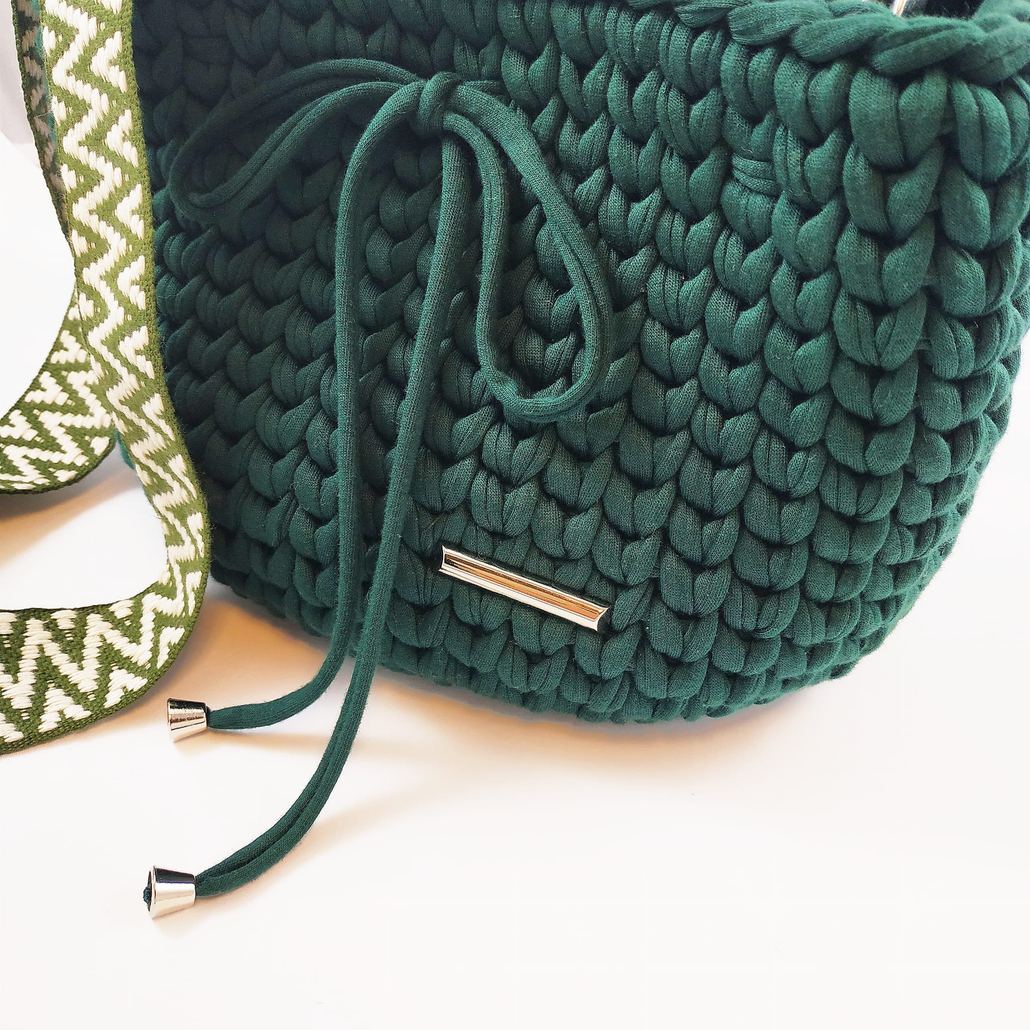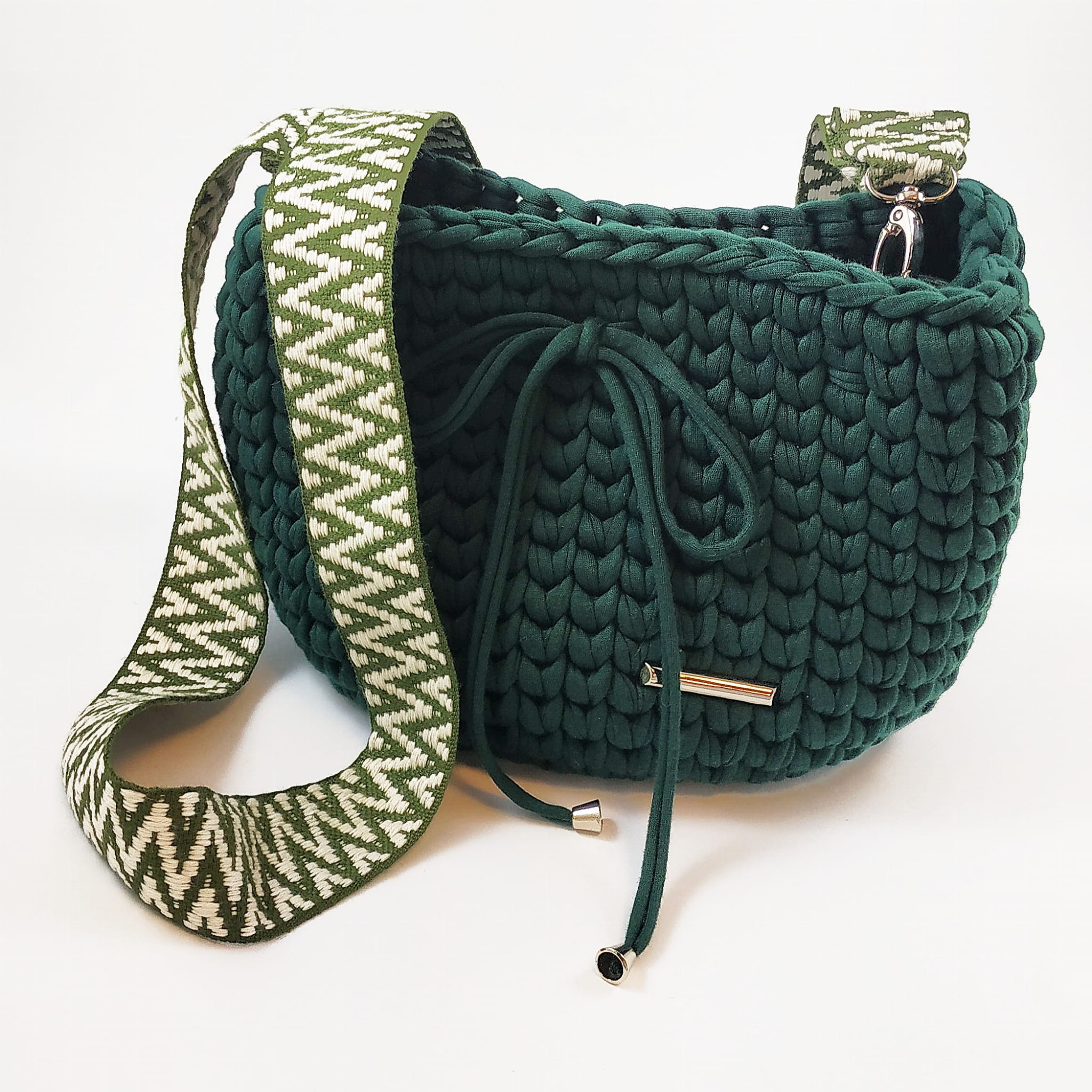 Torebka Peonia typu worek - ciemna zieleń z ozdobnym paskiem