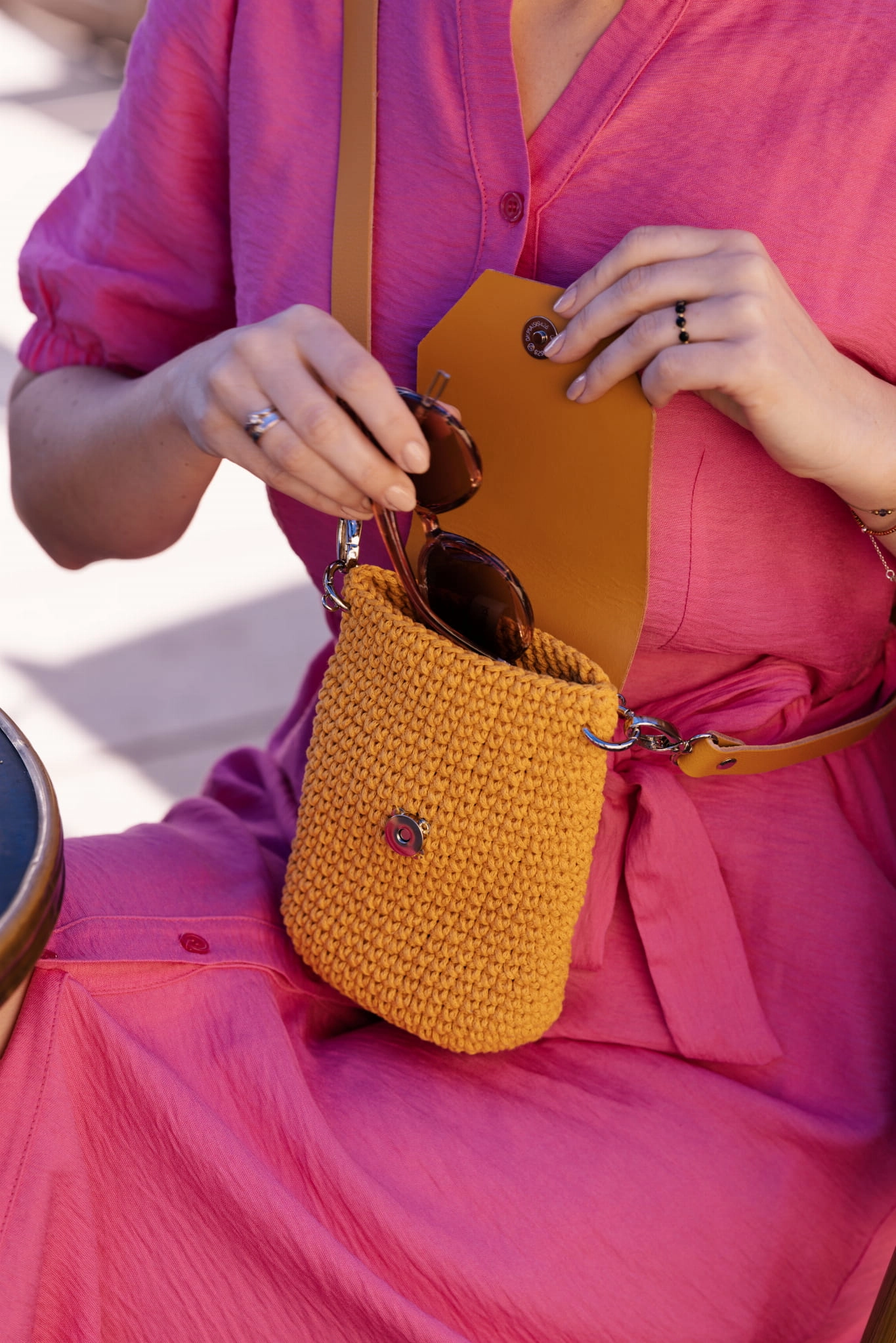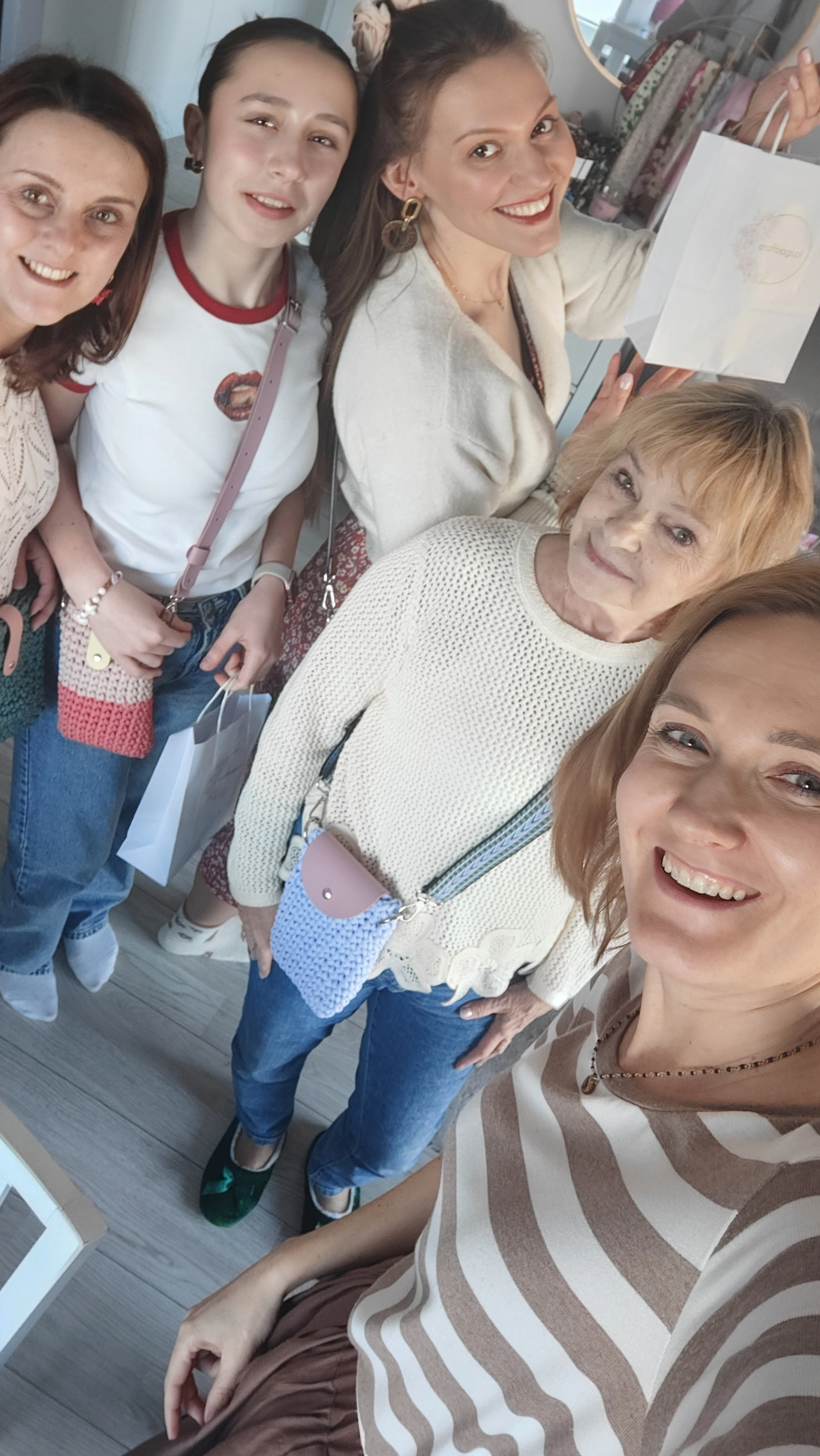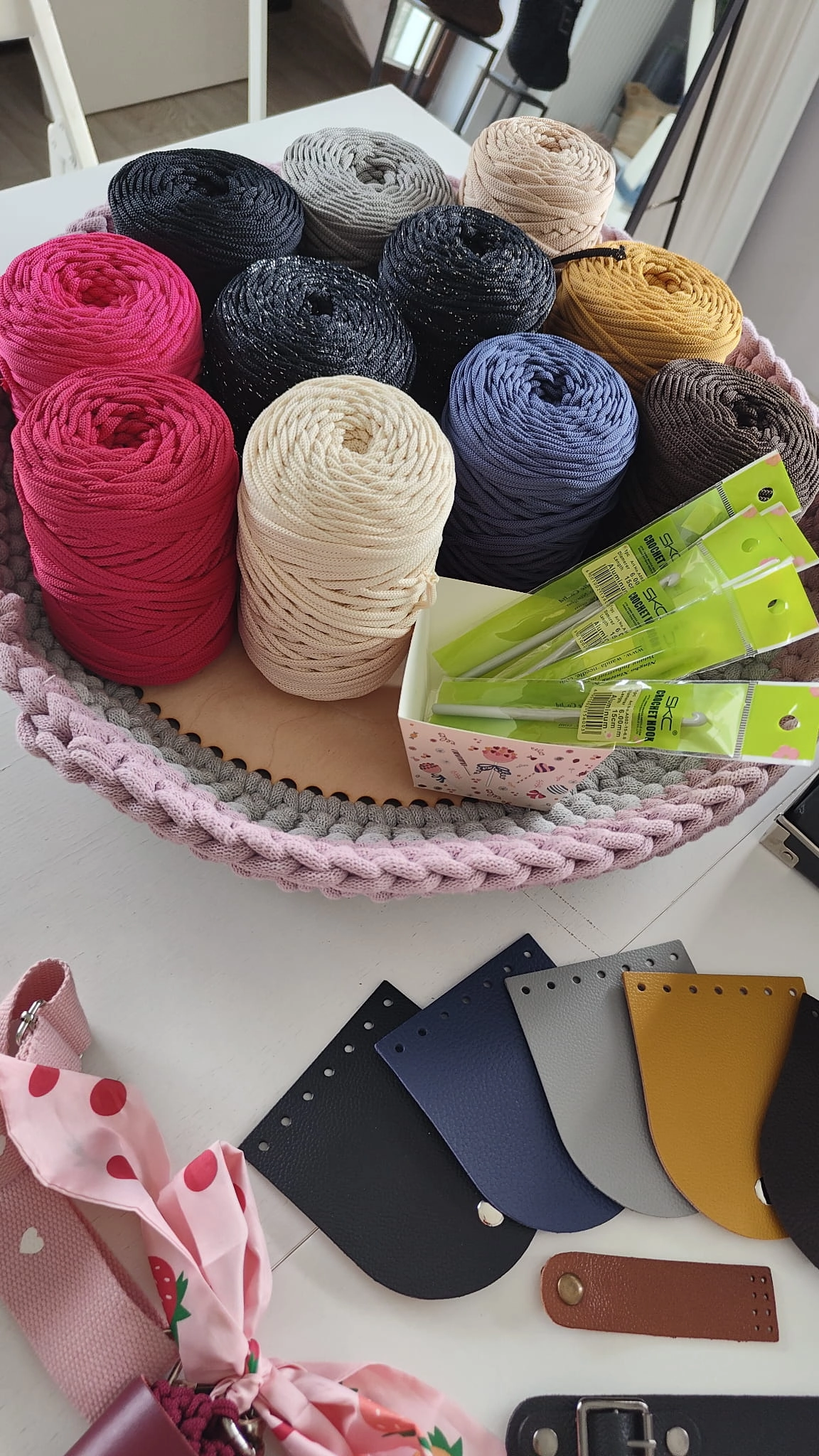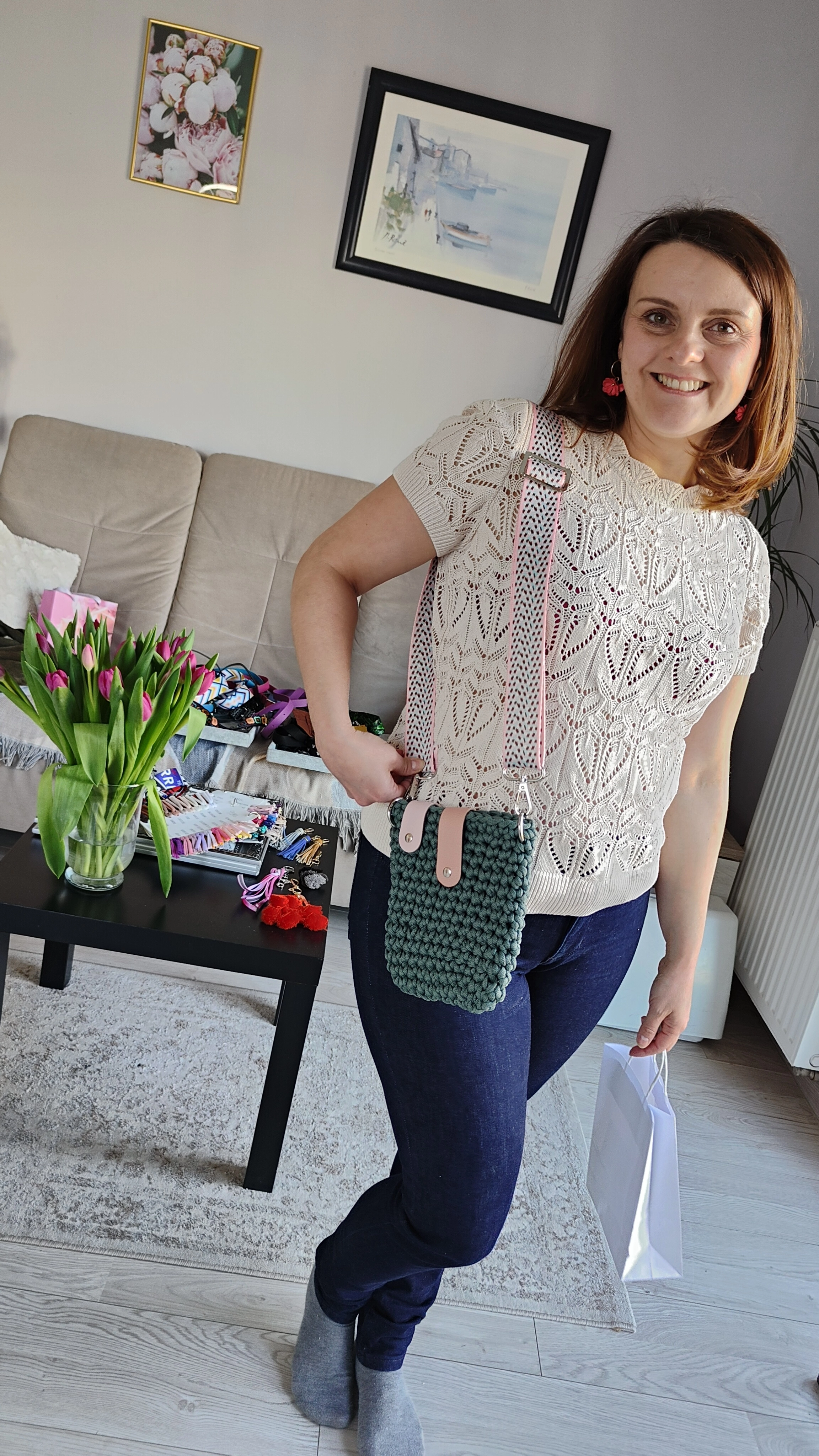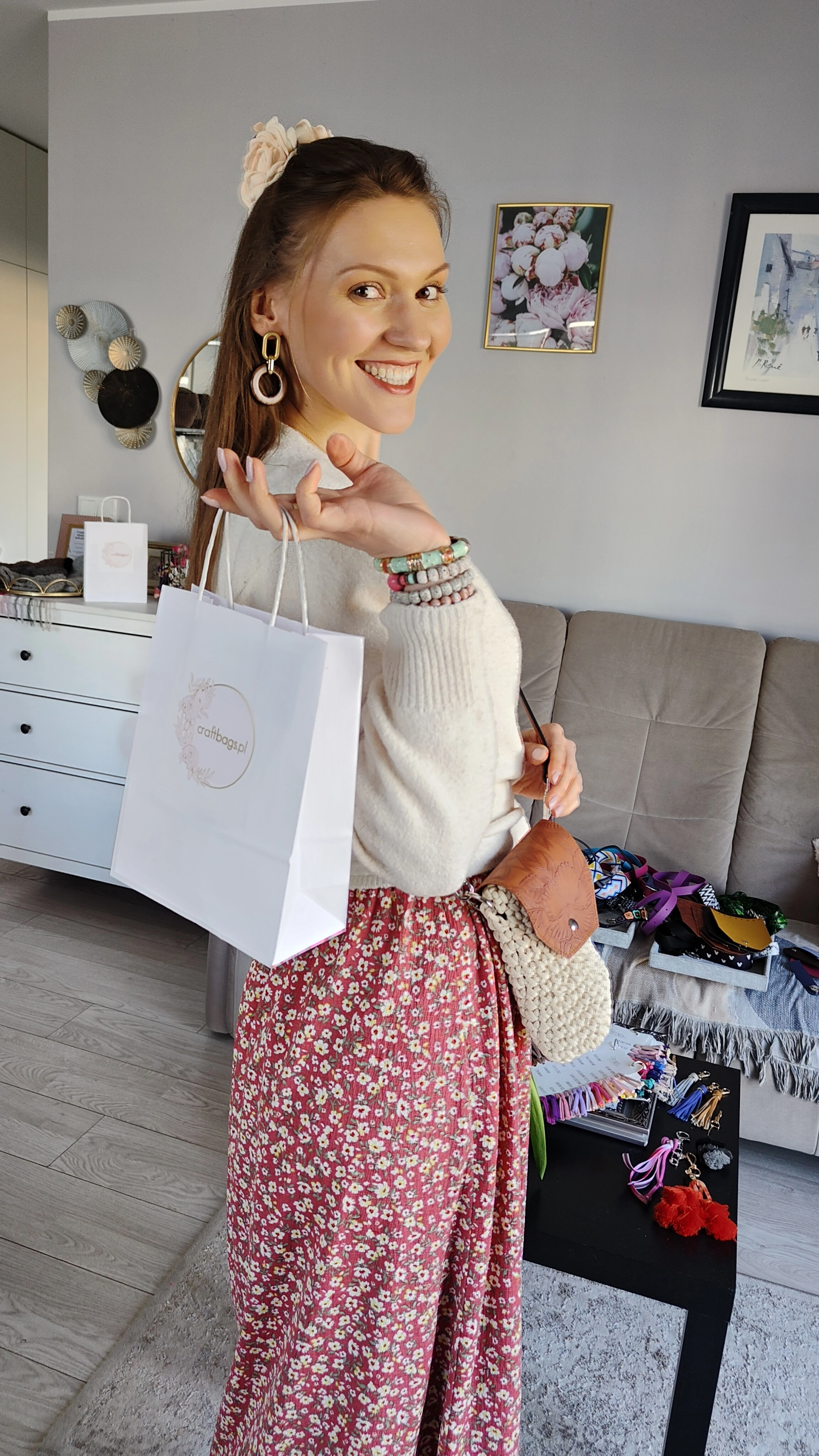 W cenie zakupu jednej torebki otrzymujesz moją kilkuletnią wiedzę oraz wszystkie niezbędne elementy do własnoręcznego wykonania swojej pierwszej Craftbags: szydełko, sznurek, skórzaną klapkę, karabińczyki i wybór pasków, a co najważniejsze sama wybierzesz kolory, które Ci się podobają, a gotowa torebka oraz szydełko wróci do domu razem z Tobą.